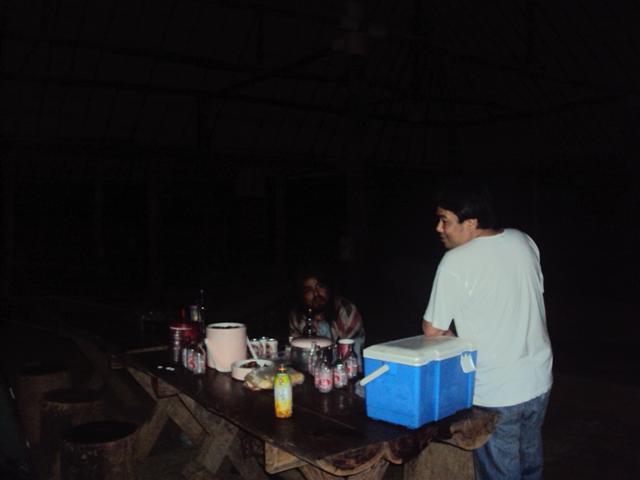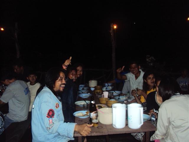 เราออกจาก ทองผาภมิประมาณเที่ยงคืน เดินทางต่อไปเข้าทางแยกพุทโธ ผ่านบ้านเกริงกะเวีย บ้านหว้ยเสือ เส้นทางสบายขึ้นมากกว่าที่เคยมามากลาดยางแล้วเมื่อเทียบกบสิบปีที่แล้วในช่วงกน้าฝนผมใช้เวลาประมาณหนึ่งชั่วโมงครึ่ง แต่วันนี้จากแยกพุทโธใช้เวลาครึ่งชั่วโมง เราเดินทางมาถึ่งไร่พี่แก้วประมาณตีสอง เพื่อจะกางเนนอนเอาแรงไว้สู้รบกับส้นทางในวันพรุ่งนี้ สมาชิกเกือบทุกท่านกางเต็นนอน แต่ก็ยังมียามไม่ยอมนอนเฝ้าเราจนถึงตีห้า โดยมีเสียงคุยกันเหมือนเสียงเลงขับกล่อมพวกเราให้เราหลับไหล