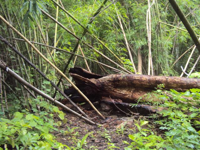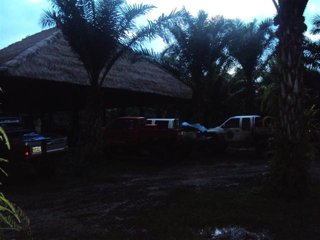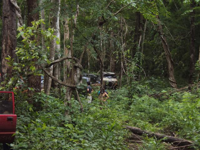 เราเดินทางมาถึงต้นไม้ใหญ่ล้มประมาณบ่าย สองครึ่งจากจุดนี้ก็จะเหลือระยะทางอีก 4 กิโลเมตร เราเสียเวลาตรงนี้อีก หนึ่งชั่วโมงเพราะมีให้เล่นสองลาย และต้องวิ้นขึ้น เลยแบ่งออกเป็นสองกลุ่มเพื่อนทำเวลาออกขวาขึ้นข้างเขา ออกวซ้ายหลบต้นไม้ จุดนี้ พี่แก่ขอนลอยเป็น leader เพราะเมื่อทริปที่แล้วมีประสบการณ์ขึ้นโดยไม่ต้องวิ้น ที่เหลือลูกทีมอีสี่คันวิ้นทุกคัน ส่วนลายขวา พี่เอกขอนลอยนำทางขึ้นดูเหมือนอยากแต่รถที่ตามมาอีกสามคันผ่านมาได้แบบคนมีของ แต่หลังจากสอบถามดูรถจากอูช่างมวล ให้ลูค้าใส่ของหลังเป็น ดิฟล็อกทั้งหมด หน้าเป็นเต็ด ก็ผ่านได้สบาย จากจุดนี้เป็นช่วงขึ้นเขาก็ต้องมีกันอีกคนละหนึ่งวิ้น ยกเว้นพี่เอกกับพี่แก่เช่นเคย ( สงสัยสองคนนี้กินของเขาไปเยอะ หรือไม่ผมว่าน่าจะหมดไปเยอะ วิ้นของพี่ทั้งสองก็ติดมาไม่ยอมใช้หรือว่าพังไม่กลัวครับพี่ทั้งสอง ) จากจุดนี้ที่เหลือทางลงตลอดสองกิโล ทุกคนต่างดีใจถึงไม่มืดแน่นอน แต่ก็ยังต้องใช้เวลาตัดไผ่อีก คันนำทั้งตัดทั้งดันจนรถมีรอยรอบคัน ลองสอบถามดูได้ความว่าไปกินรถไถ่มา (ไถ่เงินภรรยามา) เสียง ว บอกมาว่าคันนำถึงปลายทางแล้วทุกคนสบายใจแล้วมาถึงกันประมาณ ห้าโมง มาถึงเรือยังไม่มาเลย หิวกันแล้วต้องกินของเก่ากันก่อน แต่ว่าได้กินบรรยากาศรอบแพชาวดงก็หายหิวแล้ว คืนนี้มีมื้อคันมีดนตนีฟัง นอนสบายมีที่นอนและผ้าห่ม สบายเหมือนอยู่บ้านไม้ต้องมานั่งทำกลับข้าวเล่นน้ำกันสนุก บรรยากาศในแพเป็นอย่างไรลองขับรถเข้ามาดูนะครับ