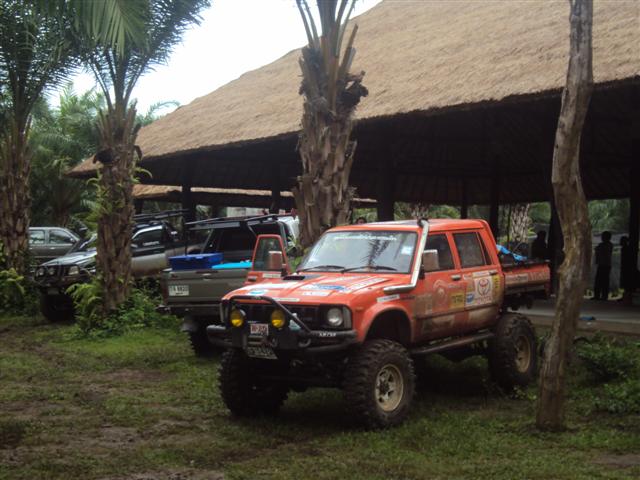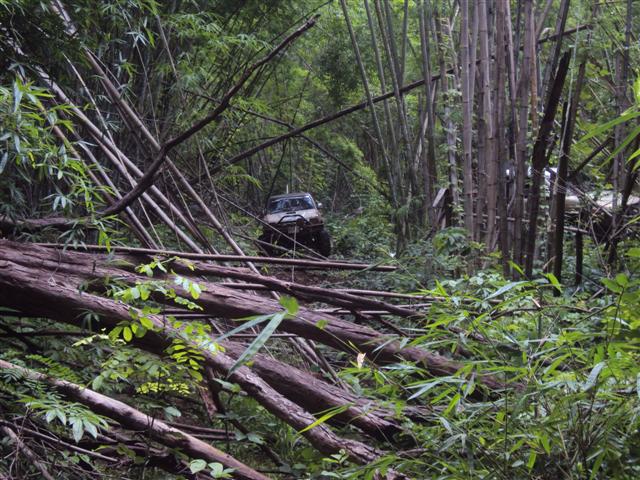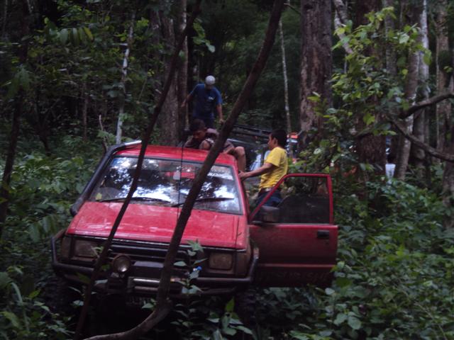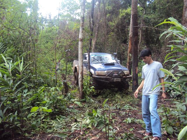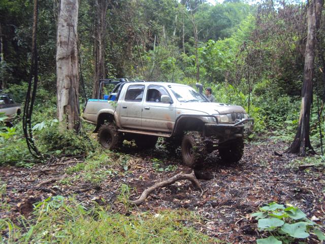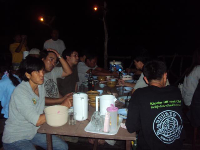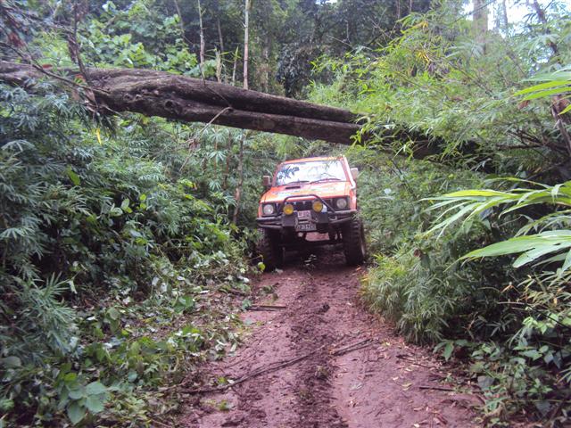 ทางพี่อ้นเลยเปลี่ยนใจให้ พี่หนึ่งมาวิ้นรถพี่เล็กแทนเอาขึ้นมาแล้วมาซ่อมกันข้างบน ล็อกให้เพลาข้างหนึ่งหมุน ช่างมวลเปิดเพื่อเชื่อมดอกจอกให้ขัดกันไว้ด้านหนึ่ง ถึงตรวนี้พวกเราเก้าคันเดินทางมาได้เพียง 1 กิโลเมตร ดูเวลาก็ป้าเข้าไปบ่ายสองแล้ว เหลืออีกยาว เลยพักกินข้าวกันตรงนี้ก่อนเพื่อสู้กันต่อ เราออกเดินทางกันต่อก็ต้องใช้เวลา พี่นันต้องกลับมาลากเพื่อนคือพี่เล็กตลอดทาง แค่ลำพังรถคันเดยวก็ขึ้นยากแล้วเพราะเป็นทางขึ้นตลอด ในช่วงนีใช้เวลาอีกสามชั่วโมงโดยได้ทางพี่อ้นคอยดูแลตลอดทาง อีก 3 กิโลเมตรเรามาถึงต้นไม้ล้มก็เกือบห้าโมงเย็น พี่แก่ดูแล้วบอกเอาลายเหมือนขามา ก็ผ่านมาได้ทุกคัน หมดช่วงนี้ก็เดินทางกันมาทำความเร็วกันได้ไม่เกินสองกิโลเมตรต่อชั่วโมงเพราะต้องค่อยประคองรถพี่เล็กออกมา และช่วงกลางคืนด้วยผู้นำต้องค่อยดูลูกทีมที่ตามมากลัวมาผิดลาย รอบนี้ ว เป็นสิ่งสำคัญมาก ต้องมีทุกคัน เพราะจะได้สื่อสารและช่วยกันได้ง่าย เราไม่ต้องกินข้าวเย็นเราหลุดมาถึงหน้าหมู่บ้านประมาณ เที่ยงคืน แล้วแล้วเราเดินทางต่อไปแวะเติมน้ำมันที่ป็ม ปตท ก็มีคนนอนพักก่อน และมีบางคันจับกลุ่มกันกลับบ้านเพราะมีงานในตอนเช้า