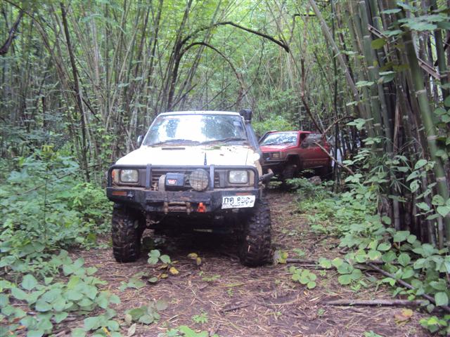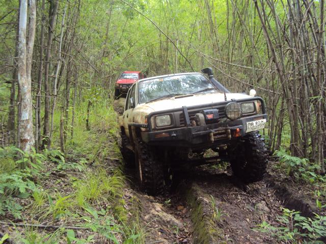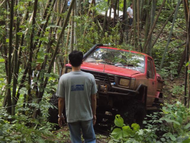 แล้วเราก็เริ่มออกเดินทางกลับโดย พี่แก่ขอนลอยเป็น ลีด พี่อ้นเป็นหัวหน้าชุด ค่อยดูแล มีพี่แสน พี่เต่า เป็นลูกมือค่อย บอกลาย เริ่มออกกันตอน สิบเอ็ดโมง ช่วงจัดขบวนหันหัวขึ้นก็ออกอาการลื่นปลิ้นไปมาแล้วเพราะมีหินบวกกับดินลื่นมาก เสียงเครื่องแต่ละคนเร่งรอบบวกกับการเลื่อกเกียร์ของรถแต่ละคันมาใช้ ทำให้ทุกคนต้องใช้ทักษะประสานกับของที่ใส่กันเขาไปนำมาใช้ให้พร้อมกันขึ้นมาได้สองร้อยเมตนก็ต้องมีว้นกันแล้งเพราะมาหินใหญ่ดักล็อกล้อเอาไว้ทำให้เร่งไม่ขึ้นแม้บางคันของครบก็อยากเพราะต้องถนอมเอาไว้ระยะทางอีกยาวไกล ไม่มีใครอยากกินข้าวลิง ดังนั้น winch ของแต่ละคันจึงถูกเรียกมาใช้ทันทีมีครบทุกยี่ย้อเช่นกันในทริปนี้ ในช่วงกำลังวิ้นกันอยู่หันไปอีที ช่างมวลเปิดลายใหม่ออกซ้ายให้ลูกค้าที่ตามมาออกซ้ายไปซะแล้ว ไปกันได้ตามสบายเลย คันที่วิ้นอยู่ถึงกับคิดไม่น่าตามลีดมาเลย หลังจากหลุดช่วงนี้มาก็เป็นทางขึ้นยาวประมาณ 50 เมตรเป็นหินปนดินเช่นกันต้องส่งกันขึ้นมา สุดท้านมิตซู ปีกนกงานเข้า ปั่นขึ้นมา เพลาขาด WINCH ก็มีปัญหาคุยกันว่ากลับไปของจีนต้องเปลี่ยนแล้ว พี่เอก ต้องหาทางกลับรถกลางเนินหันหัวมา winch (ทำให้พี่เอกต้องนึกถึงวิ้นหลังจะได้ไม่ต้องกลับรถ) สายสลึงบวกกับผ้าใบอีกสองเส้นถึงจะพอ วิ้นขึ้นมาได้ พี่เอก ก็ต้องกลับรถใหม่ขับขึ้นไปอีก ห้าสิบเมตรแล้วกลับหัวมา winch ใหม่งานก็เขาอีก โยกกลับไปกลับมา สายแรงดันสูงป็มน้ำมันพาวเวอร์แตก ได้ช่างมวลบอกอย่าดันทุรังให้ดับเครื่องเดี่ยวจะต้องเปลียนป็มพาวเวอร์ใหม่ ช่างมวลบอกว่าจะแก้ไขช่วงคราวให้ก่อนโดยตัดสายแรงดันต่ำออกแล้วต่อท่อยางไหลกลับไห้มีน้ำมันเลี้ยงป็ม แต่พาวอร์ใช้ไม่ได้แล้ว พี่เอกกล้ามขึ้นเลยหลังจากจบทริปนี้ แต่ไม่ต้องเสียเงินซื้อป็มใหม่ (มีช่างมาด้วยก็ดีอย่างนี้เอง)