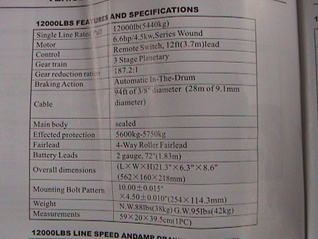 1.Electric Winch 12,000 lbs.Heavy Duty electric winch moter 6.6HP แรงดึง 5,440 kg.ราคา 18,500 บาท