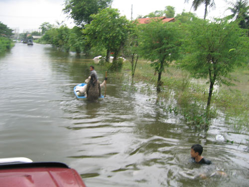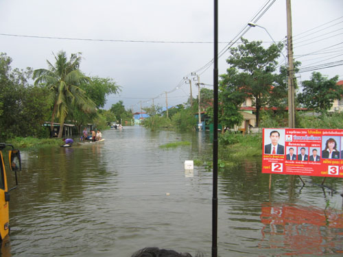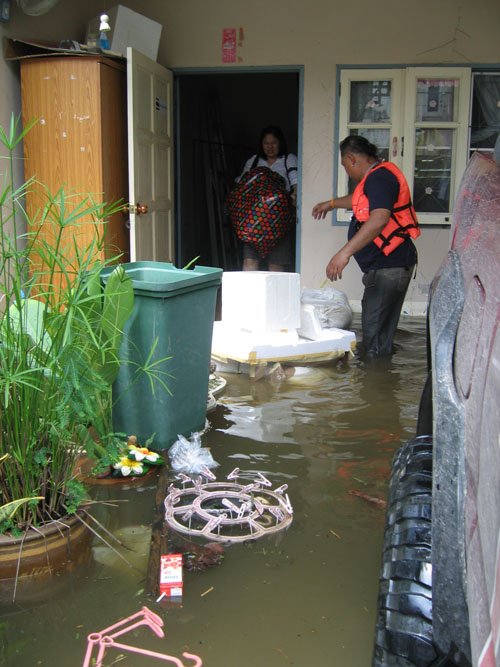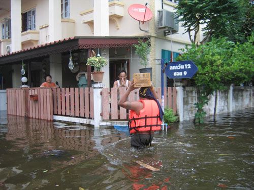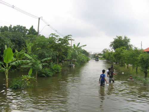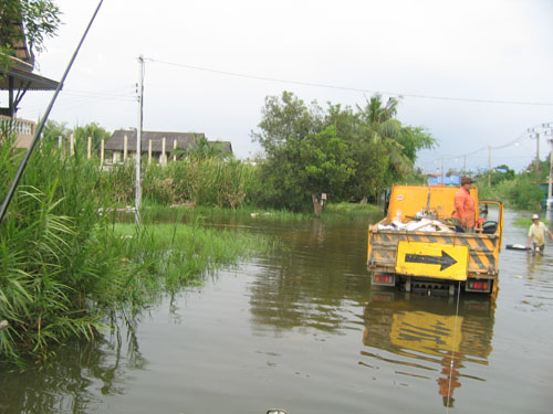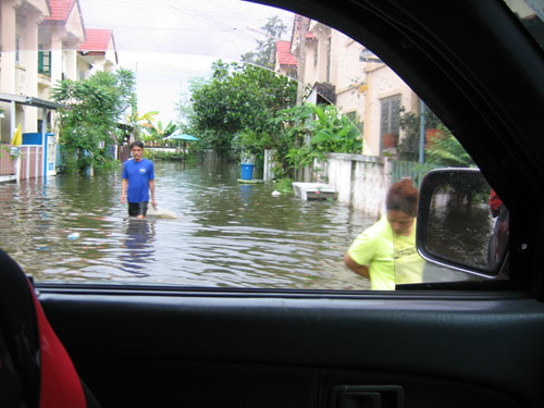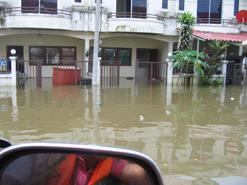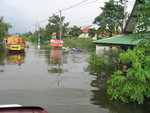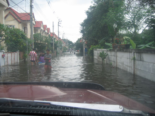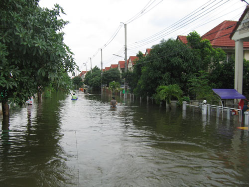 น้ำท่วมที่บางบัวทอง หมู่บ้านพารวย