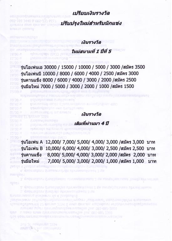 16.00 น. มอบรางวัลสำหรับผู้ชนะแต่ละรุ่น