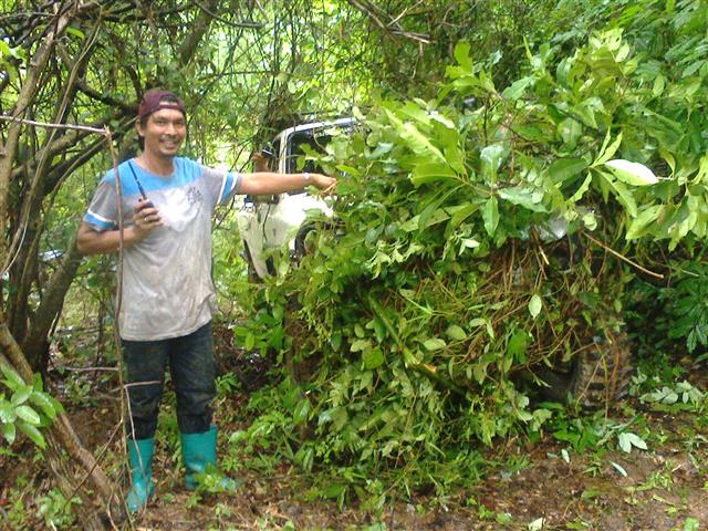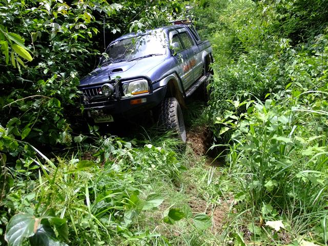 หลังจาก แวะไหว้ศาลเจ้าพ่อหัวเราะ กันแล้ว เจ้าแรมโบ้เลยขอปิดท้ายขบวน ให้คันนำหน้าบุกป่าแทน..เพราะทางรกมาก...(เราตั้งใจมาบู๊อยู่แล้ว)