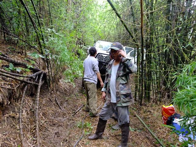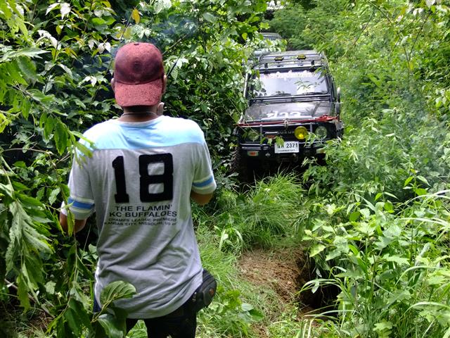 ตอนนี้คนขับเหมือนคนตาบอด เพราะพงไม้บังหน้ารถทั้งคัน คนบอกลายเลยต้องคอยวิ่งหลบรถให้ทัน...
