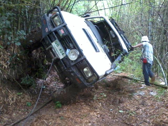บุกไปฝนก็พรำๆตลอด ดูเวลา5โมงเย็นเพิ่งขึ้นเขาลูกที่4 เสียงวอดังมาจากรถชุดหลัง หาที่กลับรถลงกันแล้วเพราะขั้นเทพถอดใจกันหมด..เอากลับก็กลับหาที่กลับยากมาก ไกล้ถึงยอดเขาซ้ายผาขวาเหว..บุกขึ้นไปเรื่อยไม่มีทำเลเลย..เอาวววโยกข้างเหวนี้แหละวะ........