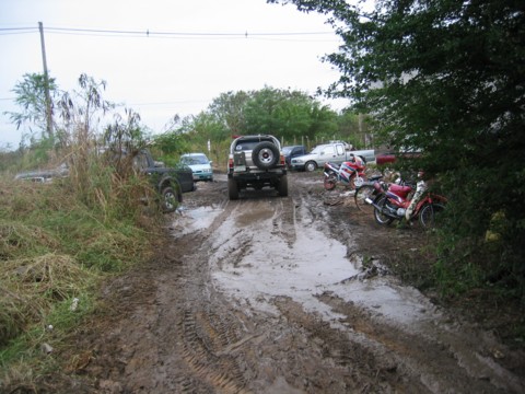 เข้าไม่ได้แต่ใจรัก ก็จอด แล้วอาศัยรถชาวบ้านเข้าไป
