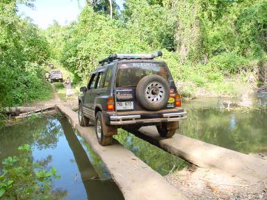 สะพานแบบนี้ มีให้ข้ามตลอดเส้นทาง บางสะพานกว้างพอดีล้อเลย