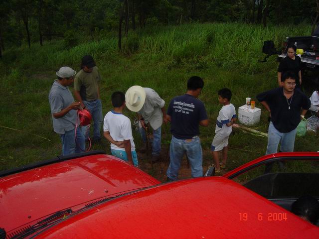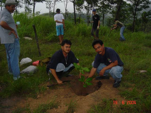 เราก้อเริ่มลงมือปลูกกันเลยครับ...ทั้งต้นสัก.....กระถินณรงค์...หูกวาง....ต้นปีบ....และอีกหลายๆต้นจำชื่อไม่ได้วางตำแหน่งไว้อย่างดีกะว่าพอโตขึ้นมาต้องบดบังแสงพระอาทิตย์ได้พอดีเลยล่ะ