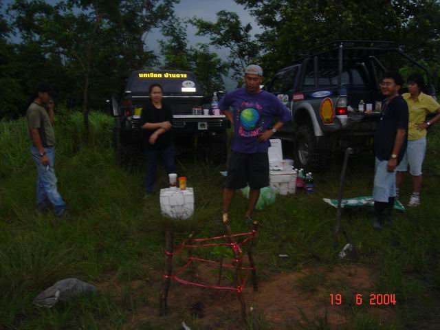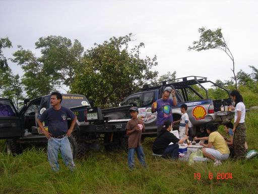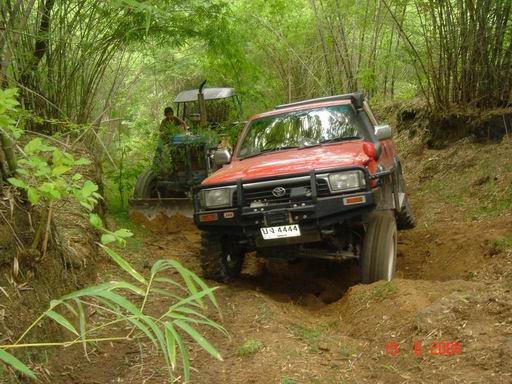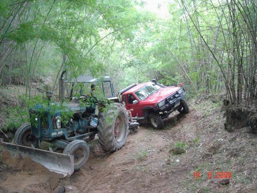 เมื่อวันเสาร์ที่ผ่านมาไม่รู้จะทำอะไรเห็นต้นไม้ที่หลายๆคนเพาะชำไว้เริ่มจะโตขึ้นเรื่อยๆแหงนหน้าไปมองบนท้องฟ้าด้านบนยามนี้ช่างสวยงามถูกใจชาวออฟโรดเสียจริงเลย...ช่างมืดครึ้ม....ดำทะมึน....ก้อนเมฆสีดำๆสิ่งไปวิ่งมา....พร้อมที่จะหล่นลงมาอย่างเสียไม่ได้.....รถกระบะขับเคลื่อนสี่ล้อประมาณ 5-6 คัน บรรทุกกล้าไม้....เครื่องดื่ม...จอบเสียม....บ่ายหน้าสู่เส้นทางสู่เขานางหย่องฝั่งด้าน ร.ร.เทคนิคมาบตาพุด ต. ห้วยโป่ง....พวกเราตั้งใจกันมานานแล้วที่อยากจะให้บนเขานางหย่องมีความร่มรื่น....ร่มเย็น....มีที่พักกายบังแดดยามขึ้นไปตอนเที่ยงๆแดดเปี้ยงๆ....มีต้นไม้ใหญ่ๆยืนตระหง่านแสดงความเป็นขุนเขา........จึงทำให้พวกเราอยากที่จะทำอะไรเพื่อทดแทนให้กับเขาบ้าง......เขานางหย่อง..............เราออกเดินทางไปซักพักก้อเจอเพื่อนๆพี่ๆน้องๆรอกันอยู่แล้วที่กลางป่าไผ่.....แว่บแรกที่เห็นเส้นทางในป่าไผ่ช่างราบเรียบเสียนี่กระไร......เลยไปป่าไผ่หน่อยก้อหักศอกซ้ายสุดๆแบบ(ชนิดที่คานแข็งต้องต้องถอยมาอีกรอบ)ขึ้นเนินชันเจอกับเข้ารถไถที่จอดเสียขวางหน้าเราอยู่.....ก่อนถึงจุดรถไถจอดเราเห็นร่องลึกๆเอียงเต็มไปหมด......เราได้ความว่ารถไถที่จอดเสียเพราะคันชักคันส่งขาด..ผมยื่นมองอยู่พักหนึ่งก้อคิดว่าเด๋วนี้เส้นทางสู่เขานางหย่องมันช่างยากเย็นและลำบากขึ้นเรื่อยๆขนาดรถไถยังแย่เลย.....ข้อสำคัญดันขวางทางขึ้นซะนี่ทำไงดีล่ะ.....ต้องเบี่ยงออกซ้ายอย่างเดียวโดยมีผานไถหล้งคมๆคอยดักกรีดตัวถังรถ.....พอจะเลยรถไถไปได้ก้อมีผานไถหน้าคอยดักส่งท้ายเราอีกที.....ไปชมภาพกันดีกว่าน่ะครับ