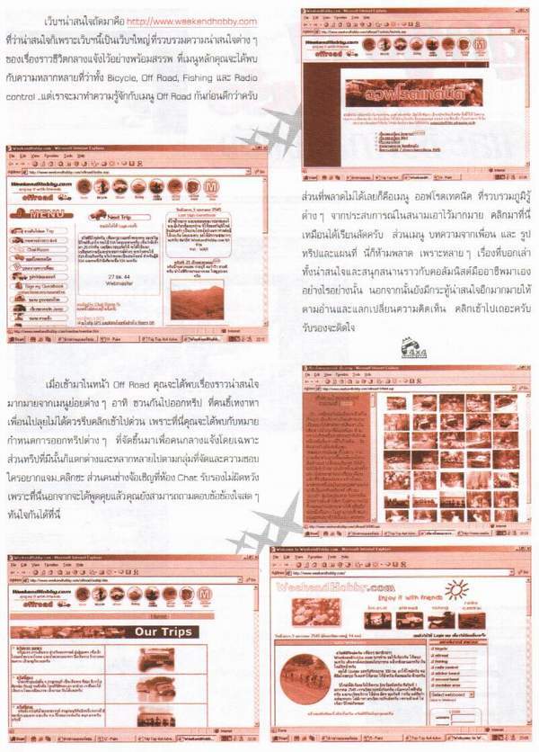....วันนี้เปิดดูหนังสือ 4x4Adventure ในคอร์ลั่ม Web Guide มีแนะนำ WeekendHobby.com ด้วย ดีใจจังเลย...ยังไงก็ขอให้เป็น web Offroad ...แบบเป็นศูนย์รวมตลอดไป..เด้อครับ....