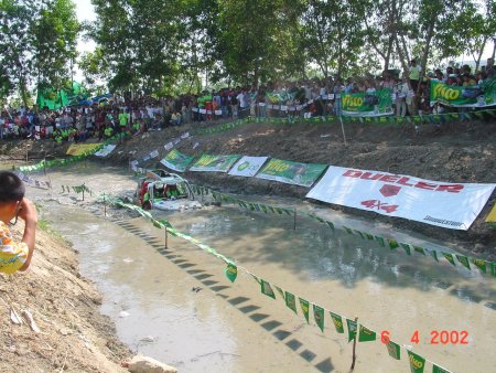 เสียงเครื่องยนต์ท่าทางเหมือนไม่มีแรง ทำให้ผู้ชมในสนามลุ้นกันตัวโกงในบ่อน้ำ แต่ก็ทำได้ดีครับ