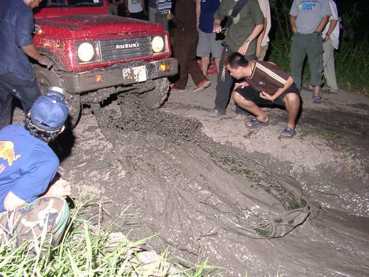 ภาค 2 ต่อครับ...พอเริ่มปูเสื่อ คุณศักดิ์คุณกุ้ง (ประธานบ่อดิน)...ก็ยิ้มออกมาได้ เพราะพี่แกรอ อยู่แล้วว่าเมื่อไหร่พวกนี้จะตั้งวงกันสักที (ชักเริ่มเปรี้ยวปาก5555)...พอปูเสื่อปุ๊ป พี่ทศ (JUC) เหมือนรู้เวลา มาพร้อมกับคอหมูทอด กับลูกชิ้นหมูลวกจิ้ม...ตามมาติด ๆ ด้วยนาย ตุ๊ก (STRADA 4X4 CLUB) มาพร้อมกับปลาเผา...สักพักคุณยืนงง กะคุณนั่งงง KIA@WEEKEND ก็มาพร้อมกับแกล้มเพียบ แถมยังมี PIZA ด้วยน๊ะ...พอเริ่มมืด นายเป๋า666 (STRADA 4X4 CLUB) มาพร้อมกับน้องเอ (ผู้ทำให้รัศมีความงามของคุณกุ้งริบหรี่ไปในพริบตา) และ Mr.Evan ผู้มาทรึมซับมิตรภาพของ ออฟโรดชาวไทยกลุ่มนี้...จากนี้ไปก็เป็นรายการสุราพาไป พ่นกันไปเรื่อย นายป๋อม ล่องน้ำลึก และเพื่อนสมาชิก (ขอโทษจำชื่อไม่หมด) รวมทั้ง นายแหลม (ขอนลอย) ก็ทยอยกันมา ร่วมวงกัน ซักพักเดียวพอกรึ่ม ๆ นายป๋อม ของเราก็เลยชวนไปชมการสาธิตการใช้อุปกรณ์ช่วยเหลือยามติดหล่มโคลนให้พวกเราดูกันเป็นขวัญตา...พวกเราต่างทิ้งวงสุราเพื่อไปชม HIGHTLIGHT ของงาน...ปรากฏว่าไอเดียดีมากครับ ความพยายามในการพัฒนาอุปกรณ์เยี่ยม ความตั้งใจจริงในการนำเสนอยอดดด...ขอเป็นกำลังใจให้นายป๋อม จงคิดและพัฒนาสิ่งประดิษฐ์ดี ๆ ออกมาเรื่อย ๆ ตามคติที่ว่า "บ่อดินไม่สามารถขุด (ด้วยมือ) ได้ภายในวันเดียว"...เสร็จจากการสาธิตอุปกรณ์แล้วก็ล้างไม้ล้างมือกลับมาตั้งวงกันต่อ...ก็มีคุณฉลามขาวตามเข้ามาสมทบ มาทางดีก็ไม่มาพี่แกเล่นลงบ่อมาซะเลย (ถามคุณฉลามขาวทีหลังแกบอกว่า ไหน ๆ ก็มาแล้วเอาซะหน่อยละกัน)...ตามมาติด ๆ ด้วยคุณ คเชนทร์(KIA@WEEKEND) และเด็ก ๆ ...ตานี้ก็เริ่มครื้นเครงเข้าที่เข้าทางกันแล้ว ก็เริ่มมีการทวงถาม...เฮ้! คืนนี้ไม่มีใครลงไปซนในบ่อเหรอ...JUC ก็ลงแล้ว KIA@WEEKEND ก็ลงแล้ว FORDก็ลงแล้ว...ก็เหลือแต่ STRADA 4X4 CLUB กลุ่มเดียวที่ยังไม่มีใครลงไปซนให้เพื่อนชม (นี่ถ้าMAMM0TH อยู่ต้องลงไปโชว์ลีลาแน่ ๆ )...เกี่ยงกันไปเกี่ยงกันมา ก็ยังไม่มีใครลง กระผมจึงถือโอกาสขอลาล่ะครับ เพราะเลยเวลานอนมามากแล้ว พวกเราก็เริ่มทยอยกันกับทีละคนสองคน ปล่อยให้บ่อดินมีแต่คุณศักดิ์ (ประธานบ่อดิน)และคุณกุ้ง อยู่กัน 2ต่อ2 (เอ๊ย! ตัวต่อตัวซิ) ภายใต้แสงจันทร์เคล้าเสียงเพลง...จามีแต่ฉันและเธอตาหลอดปายย...จ่ามีแต่ฉันและเธอตาหลอดปายยยย....เอื๊อก!!!.......จบรายงานจากสำนักข่าวบ่อดิน