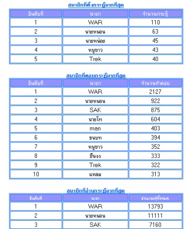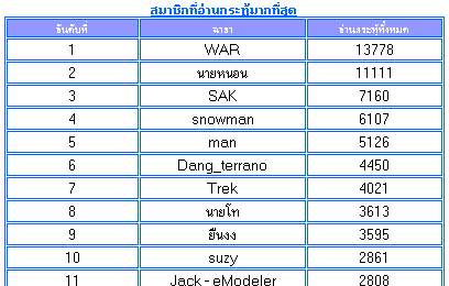 ผมก็อ่านทุกวัน วันละหลายรอบ ยังได้แค่อันดับ 5 เอง คุณ WAR คุณ SAK วันๆ ทำงานกันบ้างป่าว