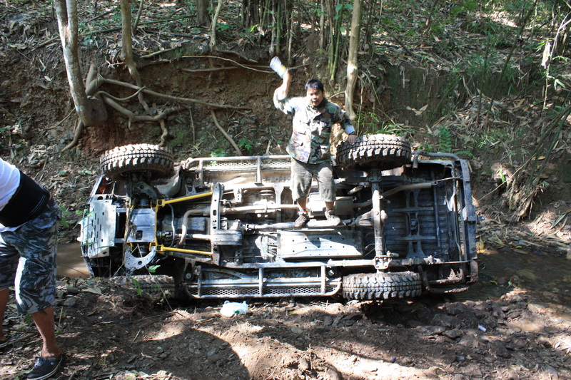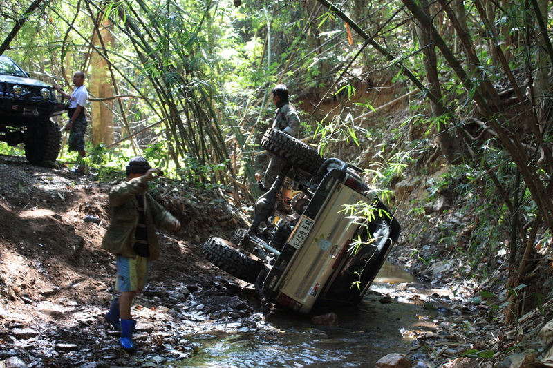ล้อขวาตกจากตลิ่งรถเลยพลิก