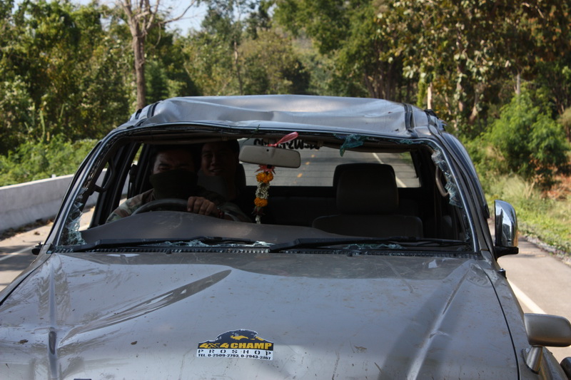 กระจกหน้าและหลังคาเสียหายแต่ด้านข้างไม่เป็นไร