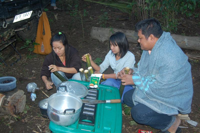 ถึงบ้านวาทู หมู่บ้านสุดท้ายที่รถจะสามารถเข้าไปถึงได้ ก็มืดแล้ว ครูฝ้ายพร้อมลูกศิษย์จัดการเผาข้าวหลามเป็นอาหารมื้อค่ำ