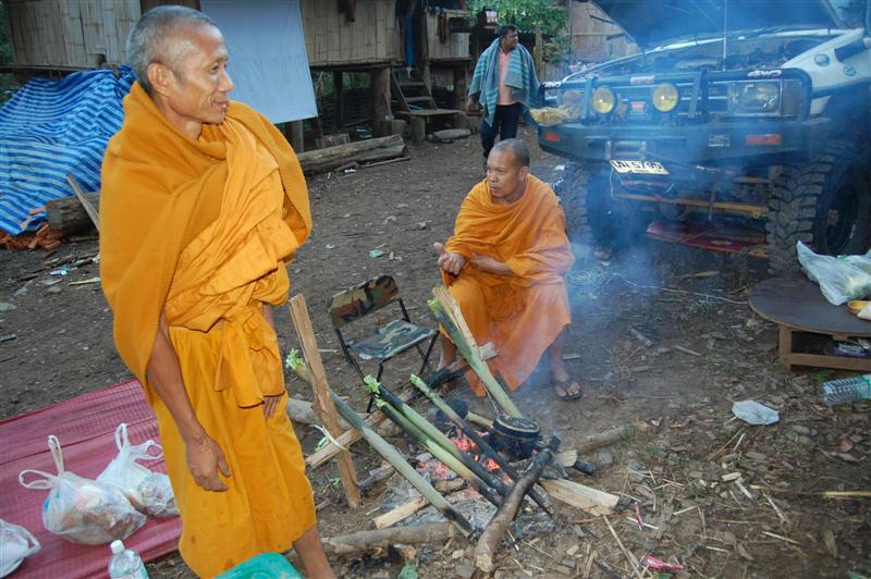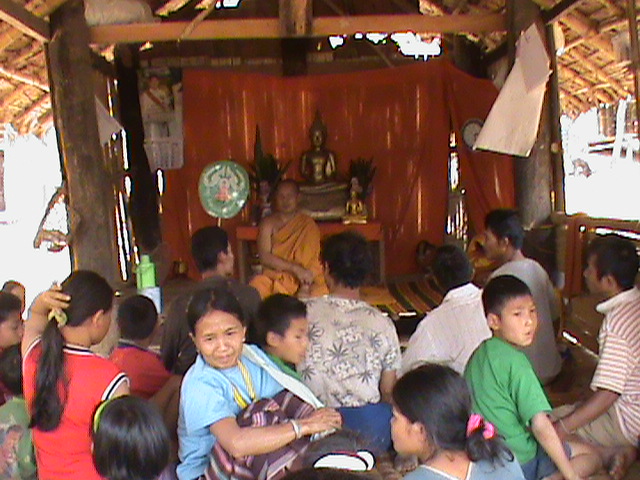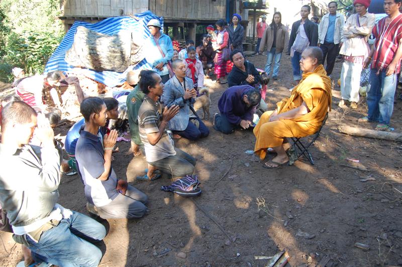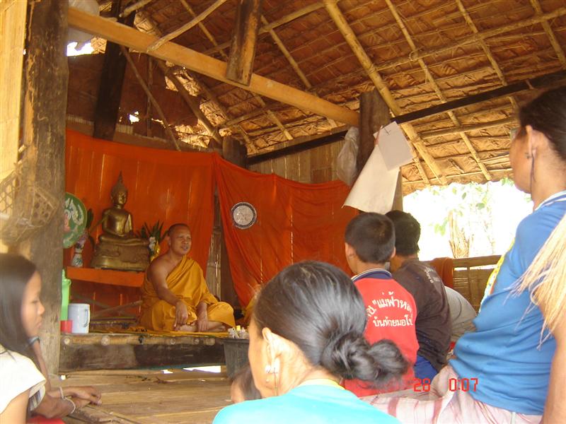 พระอาจารย์กำลังสนทนากับชาวบ้านแม่โป่