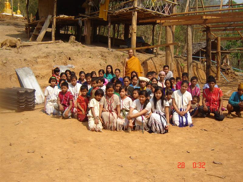 พระอาจารย์ถ่ายรูปเป็นที่ระลึกกับชาวบ้านและเด็กๆ บ้านแม่โป่