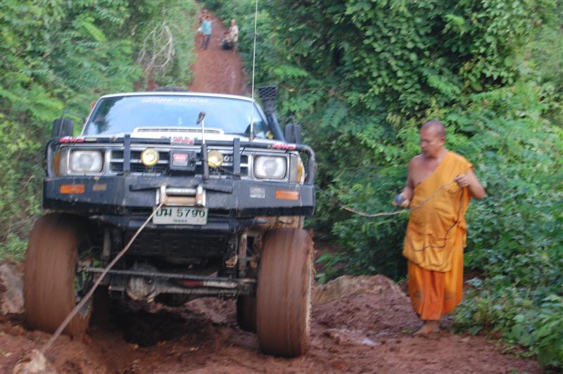 สภาพข้างทาง มัคทายกลงไปหาตอเพื่อใช้เกี่ยวลวดสลิง