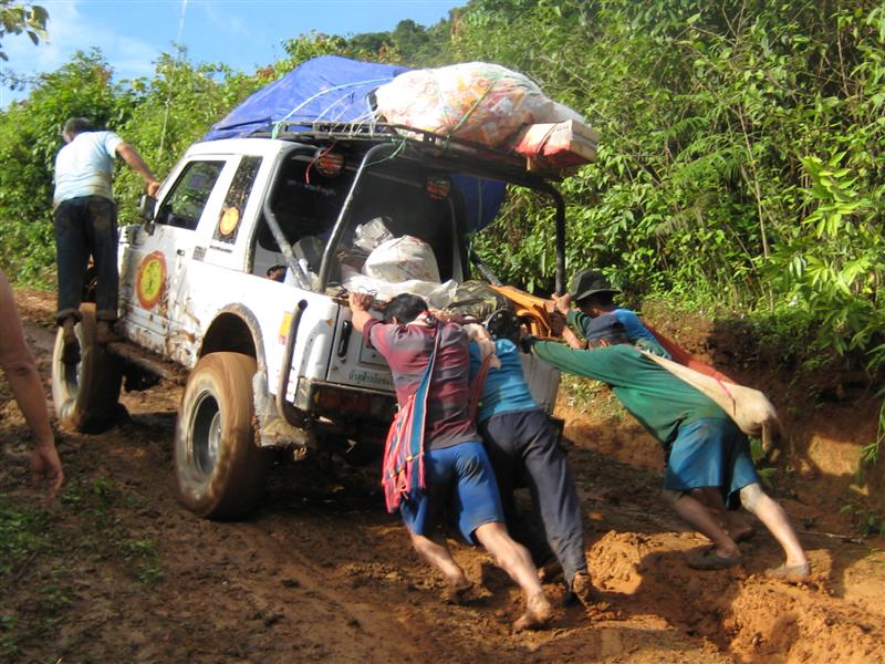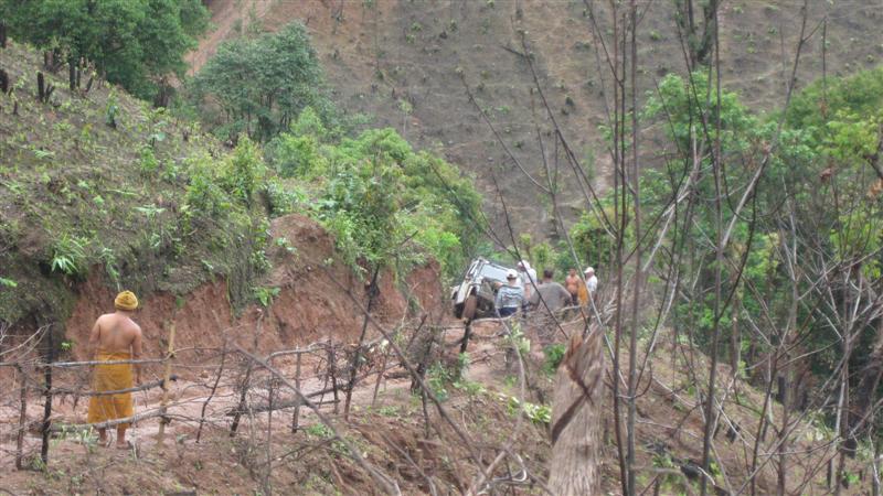 สภาพทางเป็นดินหนังหมู สูงชันเจอฝนลื่นมาก