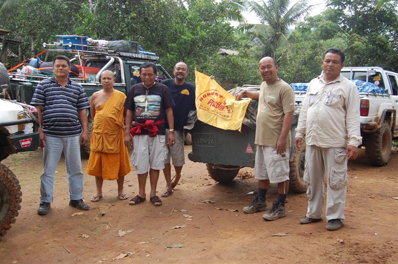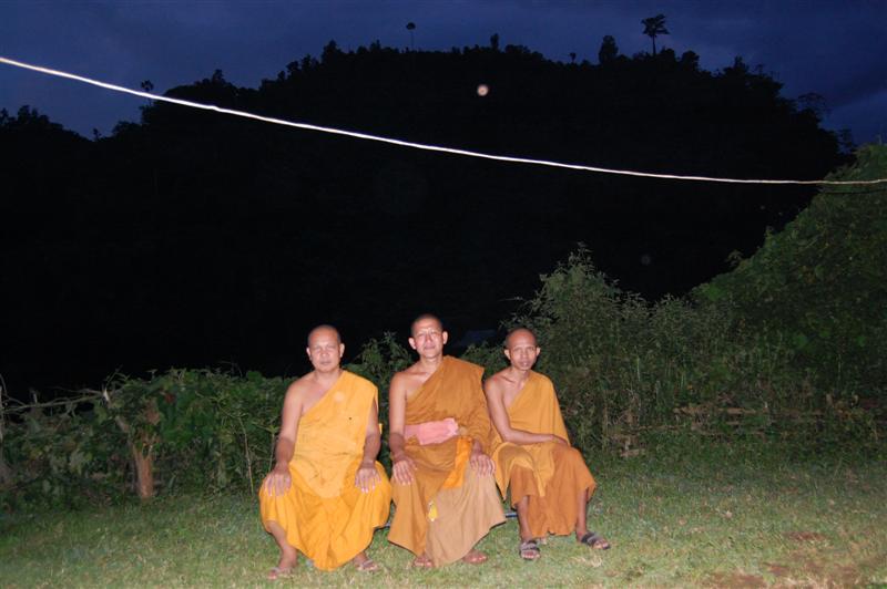 ถึงที่หมายก็ถ่ายรูปเป็นที่ระลึกกับอาจารย์คนึง ซึ่งท่านเป็นสหายธรรมของพระอาจารย์ ท่านไปจำพรรษาเพื่อเก็บข้อมูลทำวิทยานิพนธ์ซึ่งท่านกำลังศึกษาระดับปริญญาโทอยู่ องค์กลาง