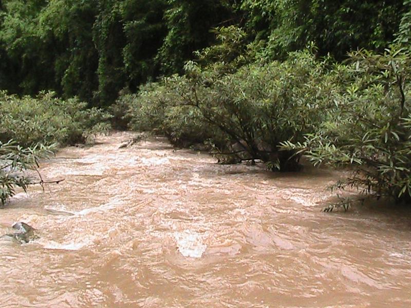 สภาพเส้นทางที่ลงจากแม่โป่เต็มไปด้วยสายน้ำที่ไหลเชี่ยว
