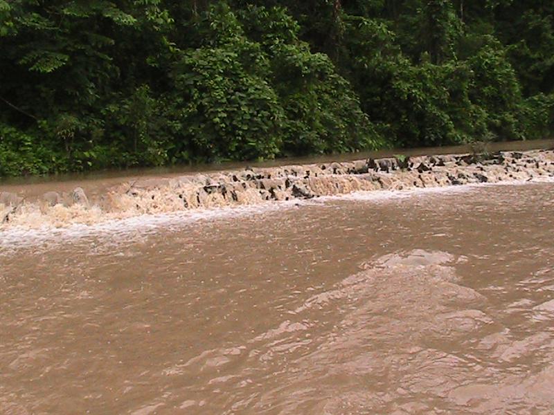 สภาพฝายแม้วซึ่งตอนขาขึ้นยังใส แต่ขาลงขุ่นมากน้ำเยอะด้วย