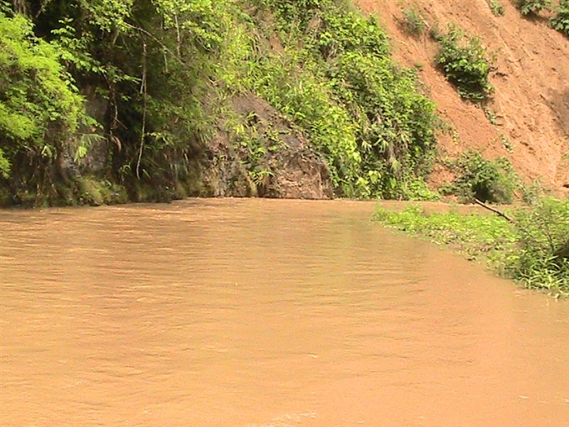 สถาพคลองที่ใช้สัญจรแทนถนนเข้าสู่บ้านแม่โป่ก่อนฝนตกหนึ่งวัน