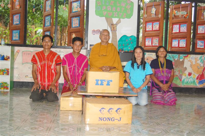 อาหารแห้งจำพวกปลาทูเค็ม ปลาหมึกแห้ง ปลากะตักแห้ง เราแจกโรงเรียนตามรายทางขึ้นไปหลายโรงเรียน เหลือถึงศูนย์ประมาณ 4-5 ลัง พอประทังชีวิตได้เป็นเดือน กับกะปิของดีเมืองระยองอีก 10 กระปุกใหญ่