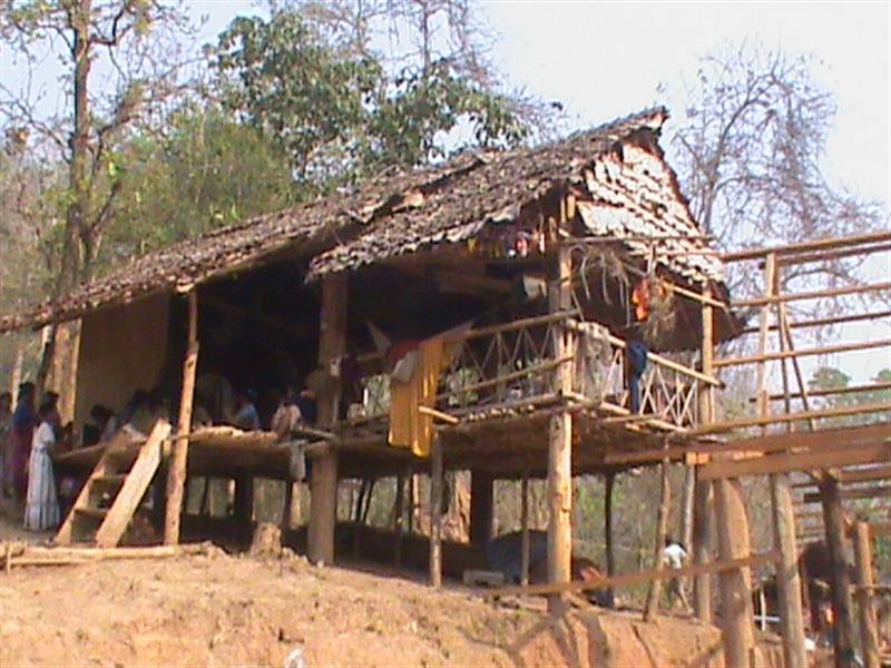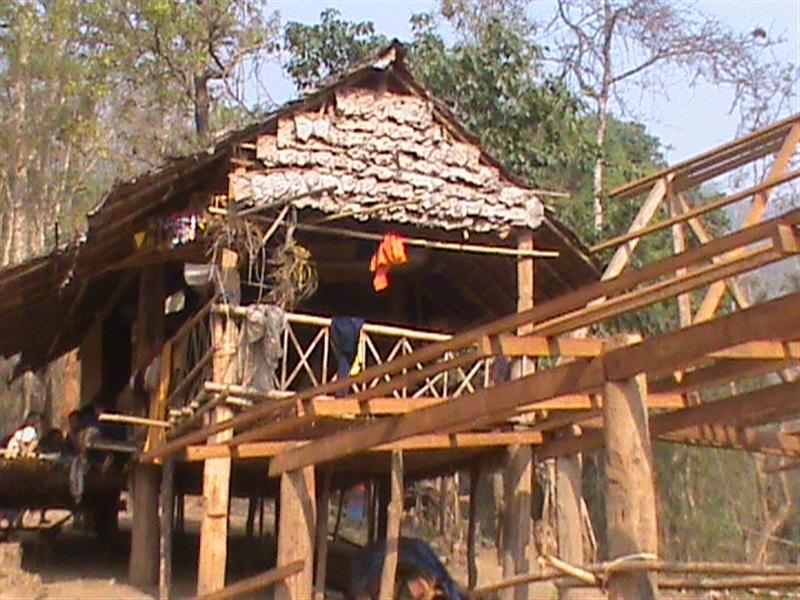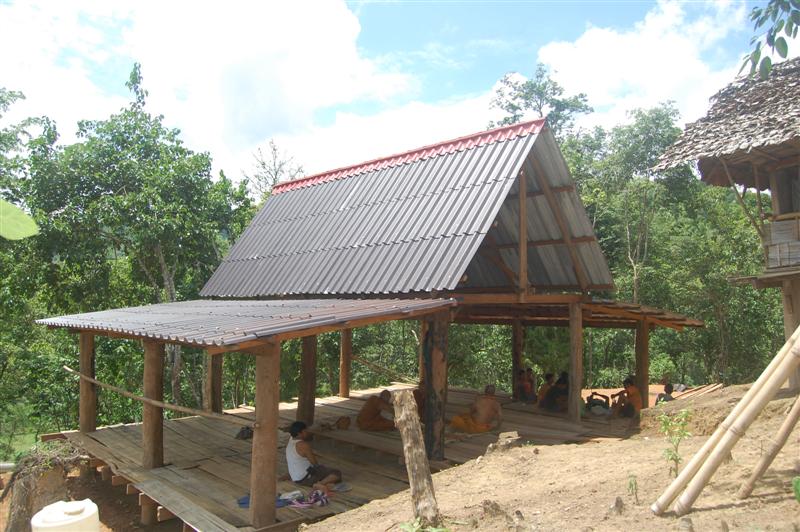 ศาลาที่พระอาจารย์ท่านช่วยสร้างให้ชาวบ้านขนาดย่อมๆยังไม่แล้วเสร็จ ต้องทำกันสาดทั้งด้านหน้าและด้านหลัง