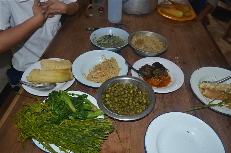 อาหารเช้าที่ศูนย์ฯหลังจากพระอาจารย์ฉันเสร็จก็ถึงคิวลูกศิษย์บ้าง ทริปนี้เราตั้งใจจะประจบชาวบ้านกินเลยไม่ซื้ออะไรขึ้นไป นอกจากปลาเค็ม 10 ลัง ปลากระป๋อง 200 กระป๋อง บะหมี่สำเร็จรูป 800 ซอง ขนมอีกพอสมควรเพื่อแจกชาวบ้าน