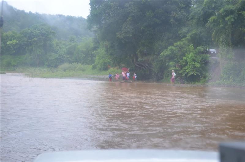 5 โมงเย็นมาถึงโพซอแวะเยี่ยมแม่ครูฝ้ายที่ป่วย น้ำเกือบมิดล้อทรายเยอะมาก ต้องดิ้นกันสุดเหวี่ยง (บนเขาทางขาด)