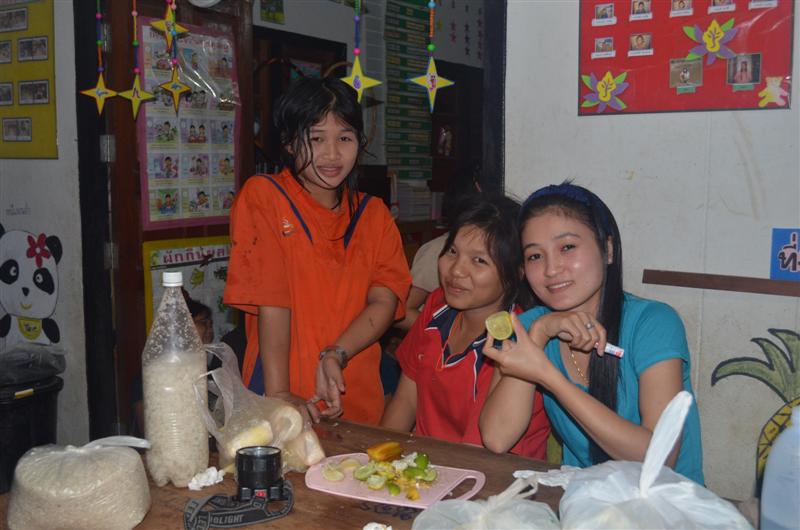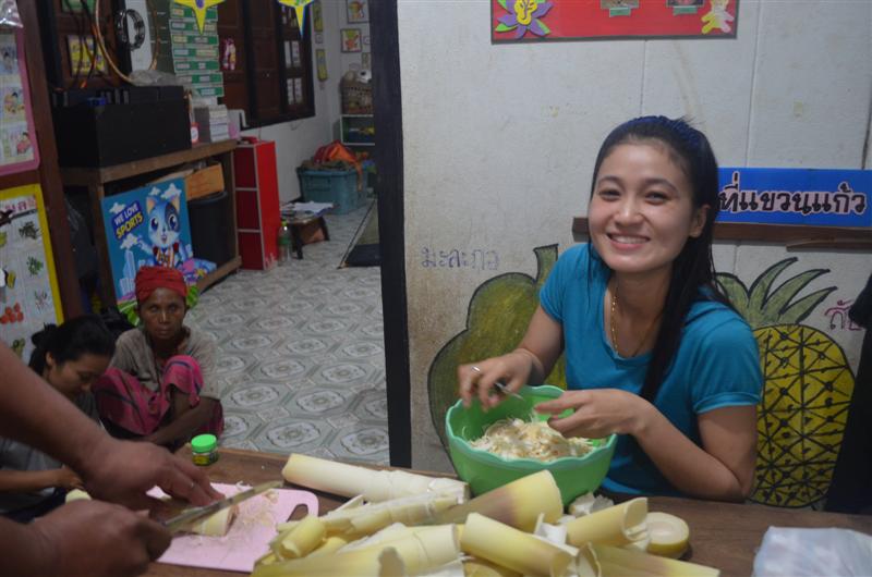 ขากลับถึงศูนย์ฯครูฝ้ายกับครูวันช่วยกันทำหน่อไม้ดองถวายพระอาจารย์