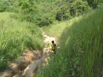 ทางลงเขา ไม่ค่อยชันเท่าไร แต่อย่าเพลอนะ ไม่งั้นกลิ้งจ๊ะ