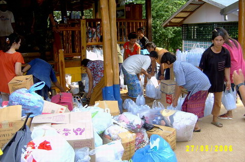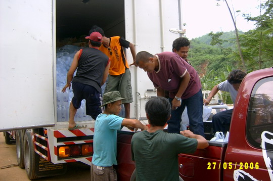 จากที่ได้ทราบข่าวความเสียหายทางโทรทัศน์ พรรคพวกทุกคนมีความเห็นว่าครวจะต้องแสดงน้ำใจช่วยเหลือผู้ประสบภัย จึงได้เร่งระดมขอบริจาคของจากเพื่อน ๆ เมื่อตอนบ่ายของวันพฤหัสที่ 25 พ.ค. โดยใช้เวลาจัดเตรียมข้าวของอยู่วันครึ่ง และเริ่มออกเดินทางวันศุกร์ที่ 26 พ.ค 49 เวลา 4 ทุ่ม มีรถร่วมขบวน 11 คัน โดยมีจุดหมายที่ จังหวัดอุตรดิตถ์ ได้เข้าไปที่จังหวัดทหารบกอุตรดิตถ์ ได้รับคำแนะนำให้ไปที่บ้านน้ำลี กับบ้านน้ำต๊ะ แต่บ้านน้ำต๊ะเจ้าหน้าที่ไม่ให้เข้าไป จึงได้เข้าไปที่บ้านน้ำลี มีคนนำของมาบริจาคกันเยอะแยะเลยครับ