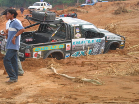 ลงน้ำสบายมาก แต่ดันมาเสียท่าบนฝั่งซะนี้ ล้อหลังไปขูดกับหินในล่องดินแก้มยางฉีก ต้องเปลี่ยนยาง