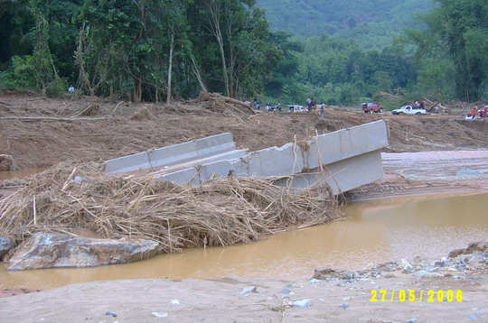 สะพานถูกน้ำพัดห่างจากคอสะพานประมาณ 300 เมตร