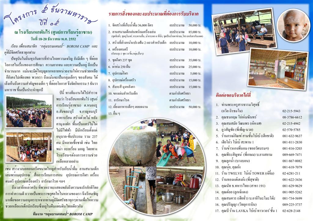 ปีนี้ กลุ่มบรมแคมป์ จะไปบริจากของกันที่ โรงเรียนหกพันไร ในวันที่ 18 ธ.ค. 52
