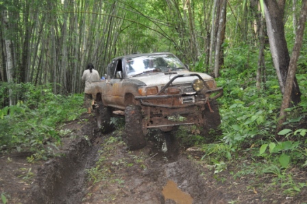 เราเดินทางมาถึงทางเขาประมาณเก้าโมงเช้าโดยใช้เส้นทางผ่านหมู่บ้าน จากจุดนี้ทุกคนก็ต่างลงมาบิดฟรีล็อคเพื่อเตรียมพร้อม ทางtrip leader ได้บอกว่าจากจุดนี้ไปใช้เวลาประมาณ 4-5 ชั่วโมงก็ถึงปลายเส้นทางแพชาวดง เส้นเครื่องรถเริ่มดังขึ้นเพื่อเรียกรอบเครื่องยนต์ออกมาทำงานกันอย่างเต็มที่ให้ผ่านบ่อโคลนแต่ละบ่อ เสียงวิทยุสิ่สารดังว่าเหมือนวิ่งบนฟองสบู่บังคับจะให้พวงมาลัยไปซ้ายขาวไม่ได้ สุดท้ายก็ต้องลงไปอยู่ในร่องล้อเดิมลายเดิมเท่านั้น มันฝืนกันไม่ได้