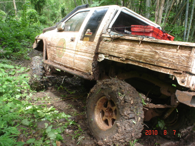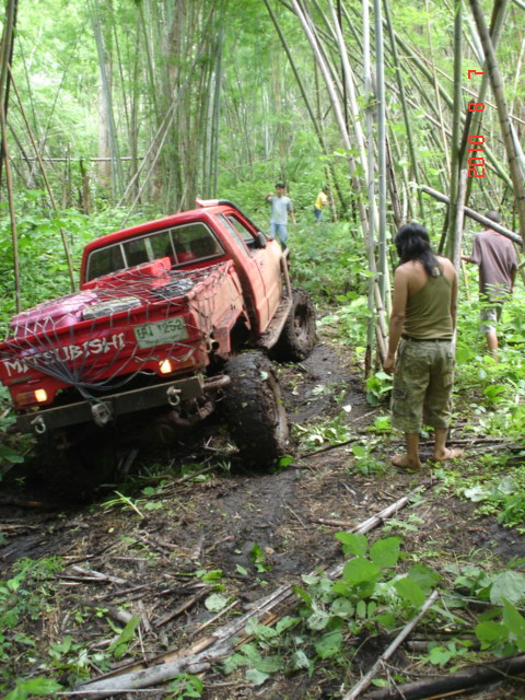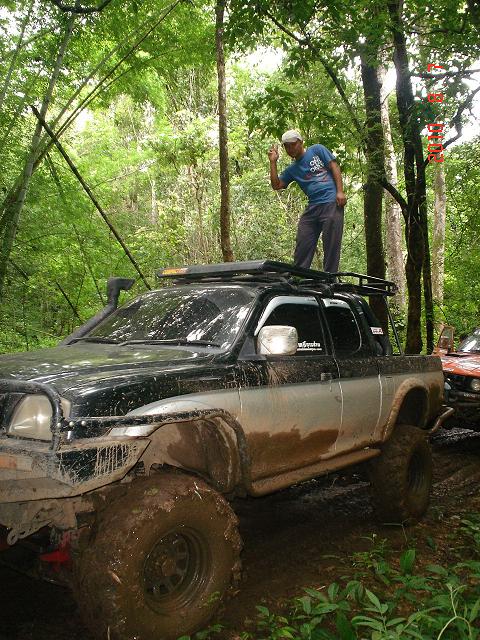แล้วเราก็เริ่มออกเดินทางกลับโดย พี่แก่ขอนลอยเป็น ลีด พี่อ้นเป็นหัวหน้าชุด ค่อยดูแล มีพี่แสน พี่เต่า เป็นลูกมือค่อย บอกลาย เริ่มออกกันตอน สิบเอ็ดโมง ช่วงจัดขบวนหันหัวขึ้นก็ออกอาการลื่นปลิ้นไปมาแล้วเพราะมีหินบวกกับดินลื่นมาก เสียงเครื่องแต่ละคนเร่งรอบบวกกับการเลื่อกเกียร์ของรถแต่ละคันมาใช้ ทำให้ทุกคนต้องใช้ทักษะประสานกับของที่ใส่กันเขาไปนำมาใช้ให้พร้อมกันขึ้นมาได้สองร้อยเมตนก็ต้องมีว้นกันแล้งเพราะมาหินใหญ่ดักล็อกล้อเอาไว้ทำให้เร่งไม่ขึ้นแม้บางคันของครบก็อยากเพราะต้องถนอมเอาไว้ระยะทางอีกยาวไกล ไม่มีใครอยากกินข้าวลิง ดังนั้น winch ของแต่ละคันจึงถูกเรียกมาใช้ทันทีมีครบทุกยี่ย้อเช่นกันในทริปนี้ ในช่วงกำลังวิ้นกันอยู่หันไปอีที ช่างมวลเปิดลายใหม่ออกซ้ายให้ลูกค้าที่ตามมาออกซ้ายไปซะแล้ว ไปกันได้ตามสบายเลย คันที่วิ้นอยู่ถึงกับคิดไม่น่าตามลีดมาเลย หลังจากหลุดช่วงนี้มาก็เป็นทางขึ้นยาวประมาณ 50 เมตรเป็นหินปนดินเช่นกันต้องส่งกันขึ้นมา สุดท้านมิตซู ปีกนกงานเข้า ปั่นขึ้นมา เพลาขาด WINCH ก็มีปัญหาคุยกันว่ากลับไปของจีนต้องเปลี่ยนแล้ว พี่เอก ต้องหาทางกลับรถกลางเนินหันหัวมา winch (ทำให้พี่เอกต้องนึกถึงวิ้นหลังจะได้ไม่ต้องกลับรถ) สายสลึงบวกกับผ้าใบอีกสองเส้นถึงจะพอ วิ้นขึ้นมาได้ พี่เอก ก็ต้องกลับรถใหม่ขับขึ้นไปอีก ห้าสิบเมตรแล้วกลับหัวมา winch ใหม่งานก็เขาอีก โยกกลับไปกลับมา สายแรงดันสูงป็มน้ำมันพาวเวอร์แตก ได้ช่างมวลบอกอย่าดันทุรังให้ดับเครื่องเดี่ยวจะต้องเปลียนป็มพาวเวอร์ใหม่ ช่างมวลบอกว่าจะแก้ไขช่วงคราวให้ก่อนโดยตัดสายแรงดันต่ำออกแล้วต่อท่อยางไหลกลับไห้มีน้ำมันเลี้ยงป็ม แต่พาวอร์ใช้ไม่ได้แล้ว พี่เอกกล้ามขึ้นเลยหลังจากจบทริปนี้ แต่ไม่ต้องเสียเงินซื้อป็มใหม่ (มีช่างมาด้วยก็ดีอย่างนี้เอง)