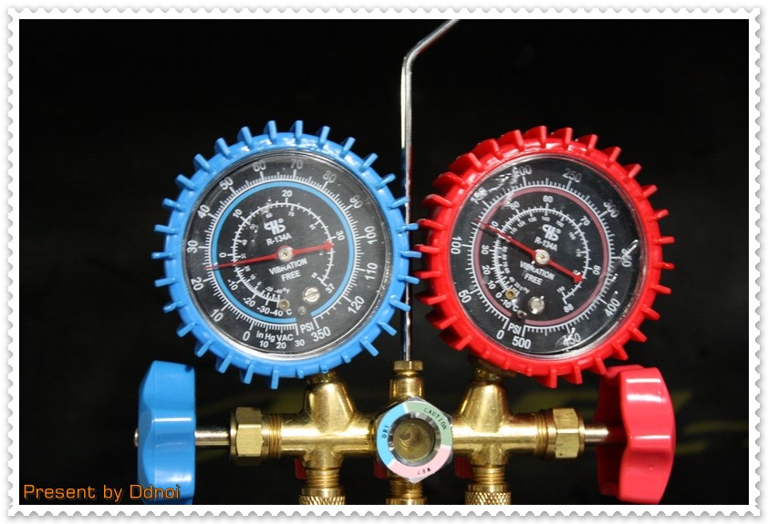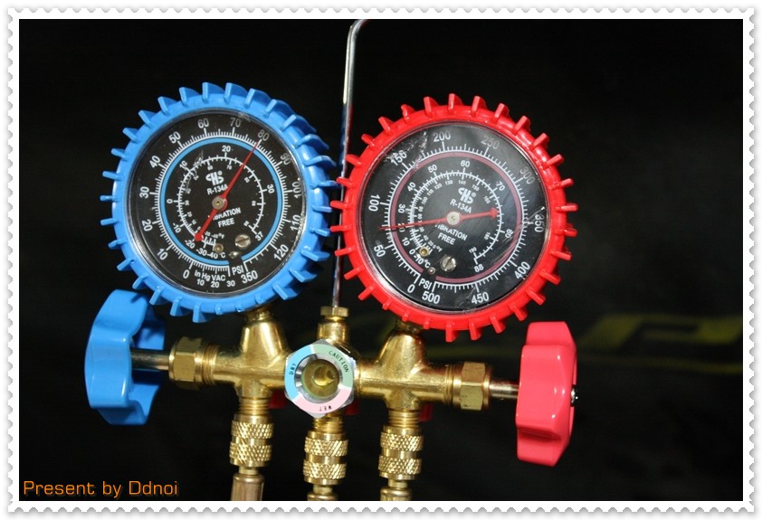 เริ่มด้วยเติมจากทางด้านแรงดันสูงก่อนครับ.. โดยเปิดวาวด้านแรงดันสูง (ค่อย ๆ เปิดนะครับ..)