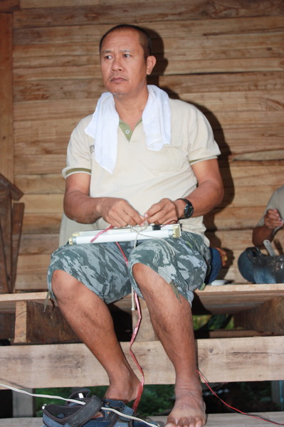 น้าเบ้กำลังเก็บหลอดไฟที่ต่อแบตใช้กันเมื่อคืน