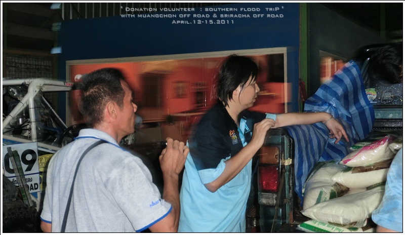ข้าวสารจำนวนประมาณหนึ่งตันครึ่ง...จากแรงงานของพนักงาน FUU ESSO SCF. PROJECT ที่ร่วมบริจาคให้พี่-น้องทางภาคใต้...เริ่มการขนถ่ายออกสู่จุดหมาย