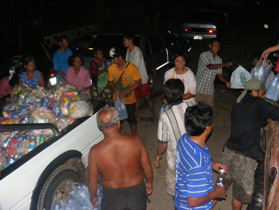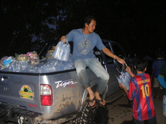 ...อีกมุมครับถุงยังชีพ น้ำดื่ม และก็ข้าวกล่องแบ่งปันกัน...