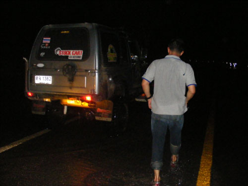 หลังจากเพลาข้างขาด....ช่วยกันดึงรถจากกลางถนนสายเอเชียเข้าริมทาง.....เพื่อความปลอดภัยและความสะดวกของผู้ใช้เส้นทาง