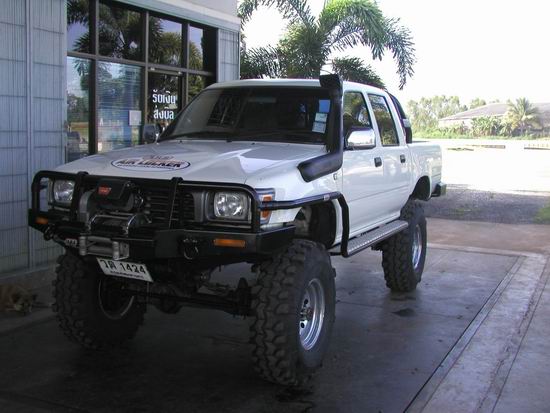 ของกระผม YN55 4 ประตู สีขาวเครื่อง 2L-T Turbo ยาง googyear 30 AT โช้ค procom es9000 แหนบหน้าหลังอะไรไม่รู้เหมือนกัน ตอนนี้กำลังแต่งตัวไม่รู้จะเริ่มตรงไหนดี เพราะออกตัวเกียร์ 1 เริ่มมีอาการสั่นแต่ถ้าร้อนแล้วหายไม่ทราบพอชี้แนะได้บ้างหรือเปล่าครับ