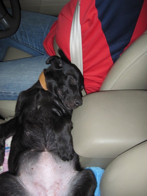 เจ้าตัวนี้ลูกผสมลาบาดอร์ นอนหน้ารถ อายุ 3 เดือน