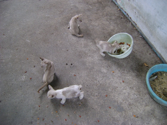 เมื่อวานไปรับมอบบ้านที่ซื้อมือสองมา คนเช่าเจ้าของเดิมย้ายออกไป ทิ้งลูกแมวไว้สี่ตัว หากมีท่านใดเมตตา และมีกำลัง ก็ช่วยเมตตารับไปเลี้ยงด้วย จะเป็นบุญอย่างสุงเลยครับ เพราะปัจจุบันบ้านหลังนี้กำลังจะรอซ่อมอยู่ ไม่มีคนดูแลมันได้ ผมก็ไปไม่ทุกวัน วันนี้เข้าไป มันร้องกระจองงอแง หิวมาก ผมเลยแวะไปร้านอาหารสัตว์ จัดการให้มันเรื่องอาหารเม็ดและนมสดกล๋อง