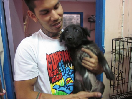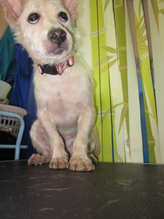 น้อง มอมแมม เพศผู้ น่าจะอายุยังน้อย หน้าตาเชื่อง จับตัวก็ไม่กัด ไมุ่ดุ เป็นหมาที่มีคนเอามาปล่อย เห็นคนที่วัดเล่าว่าถีบลงมาจากรถ ก็มีสภาพยังงี้แล้ว เดินขาลากทั่ววัดอยู่หลายวัน หาตัวไม่เจอ เพราะคงหวาดผวา กับสถานที่แปลกใหม่ หมาเจ้าถิ่น จนมีแผลที่ขาเต็มไปหมดจากการลาก